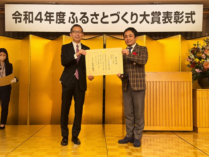 ふるさとをより良くしようと頑張る団体、個人を表彰する賞です。人宿町を舞台としたまちづくり「OMACHI創造計画」が評価されて受賞者となりました。